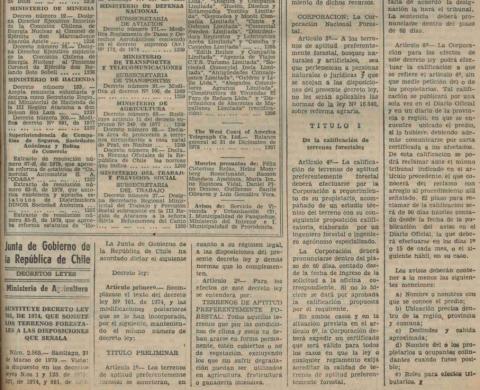 Ley de Fomento Forestal. Es promulgado el DL Nº 701, que regula la actividad forestal.