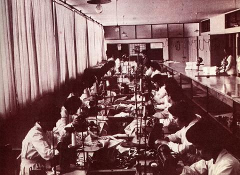 La mujer chilena también participa en los programas de la CORFO. Este es uno de los talleres INACAP en donde se le capacita profesionalmente en el rubro de la confección.