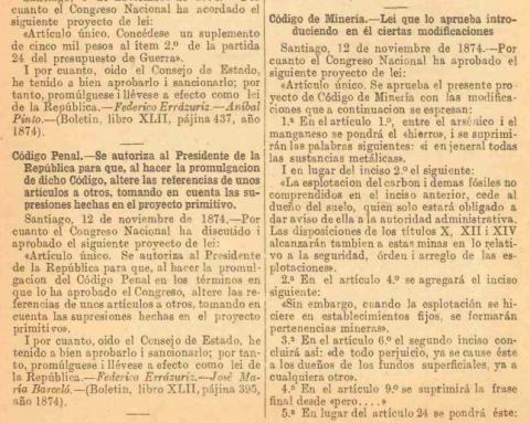 Código de Minería. El Congreso Nacional aprueba el Código de Minería, que regula e impulsa la minería nacional.