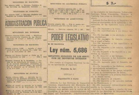 Servicio de Impuestos Internos. Es promulgada la ley Nº 5.686, que establece el Estatuto Orgánico de los Servicios de Impuestos Internos.