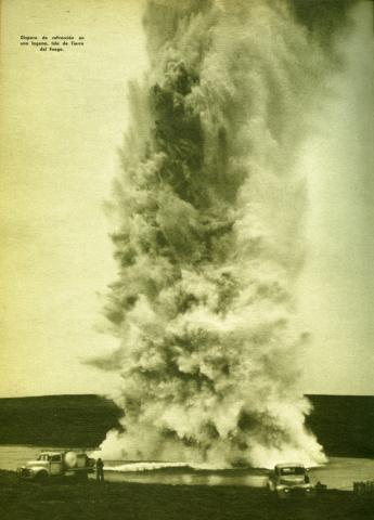 Disparo de refracción en una laguna, Isla de Tierra del Fuego.