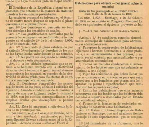 Habitaciones obreras. Es promulgada la ley Nº 1.838, con el propósito de favorecer la construcción de habitaciones higiénicas y baratas destinadas a la clase proletaria.