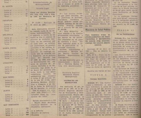 Ley de ISAPRES. Es promulgado el Decreto con Fuerza de Ley Nº 3, que crea las Instituciones de Salud Previsional y faculta a los trabajadores y personas en general a depositar en estas sus cotizaciones obligatorias de salud.