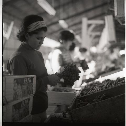 Primer plano, obrera en packing de uva, San Felipe, fines años ‘66.